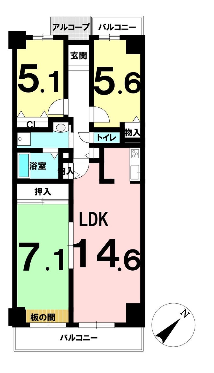 | 主要採光 | 南東向 | バルコニー | 南東向12.94㎡ |